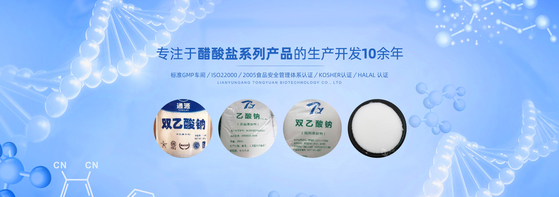 連云港市通源生物科技有限公司 是生產(chǎn)雙乙酸鈉、無水醋酸鈉、三水醋酸鈉、醋酸鉀、乙酸鈉、丙酸鈉、丙酸鈣和氯化鉀等系類醋酸鹽產(chǎn)品的專業(yè)制造商。公司專注于醋酸鹽系列產(chǎn)品的生產(chǎn)開發(fā)10余年,是國(guó)內(nèi)專業(yè)醋酸酸鹽產(chǎn)品生產(chǎn)基地。  目前,我們已和全球30多個(gè)國(guó)家和地區(qū)建立長(zhǎng)期的業(yè)務(wù)合作關(guān)系,是中國(guó)較大的雙乙酸鈉生產(chǎn)商和出口商之一。作為中國(guó)食品添加劑和配料協(xié)會(huì)理事單位,通源公司已建成標(biāo)準(zhǔn)GMP車間5000余平方米,通過了ISO22000:2005食品安全管理體系認(rèn)證、KOSHER認(rèn)證、HALAL 認(rèn)證等,這些都是我們提供高質(zhì)量產(chǎn)品和優(yōu)良服務(wù)的前提和確保。  生產(chǎn)出色產(chǎn)品,提供優(yōu)良服務(wù),滿足顧客需要,是我們努力的目標(biāo)。愿和我們的朋友們攜手,共... →查看詳細(xì)
